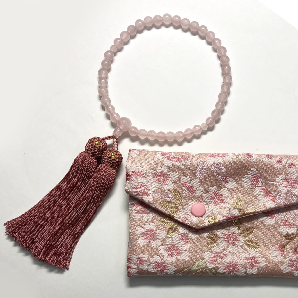 ローズクオーツ共仕立 正絹房 念珠袋付
