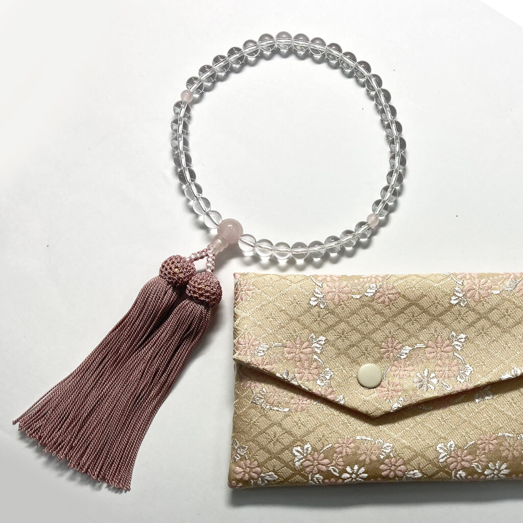 水晶 ローズクオーツ仕立 正絹房 念珠袋付