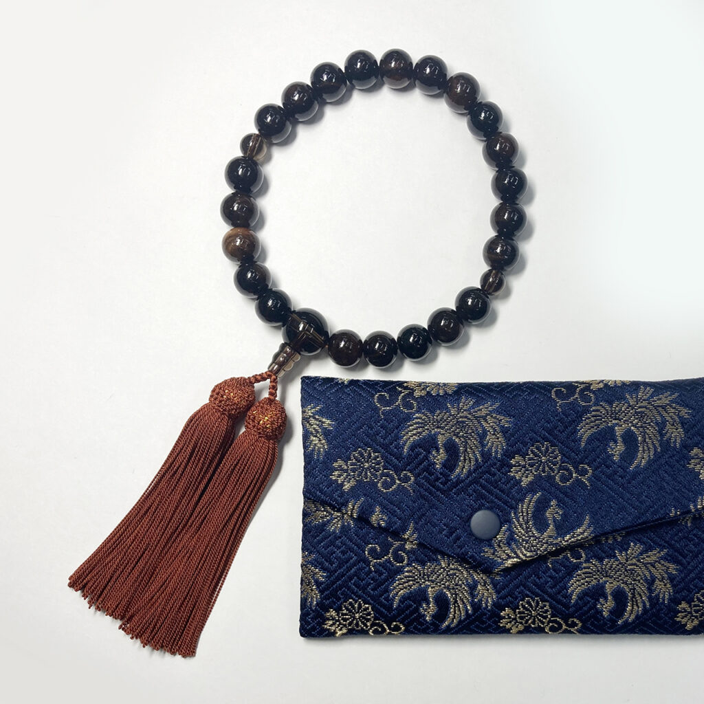 つやあり縞黒檀 茶水晶仕立 正絹房 念珠袋付